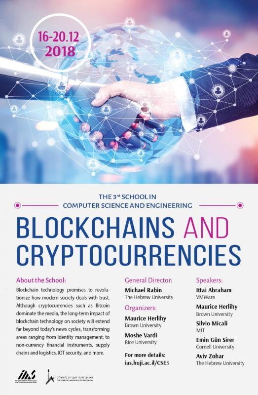 The IIAS Winter School on Blockchains and cryptocurrencies brings together leading researchers in the field to cover the mathematical and algorithmic foundations of the field, as well as more practical engineering issues, with the goal of understanding both the opportunities and the hazards emerging from this area.